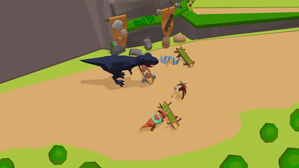 Собирайте ресурсы, сражайтесь с динозаврами.