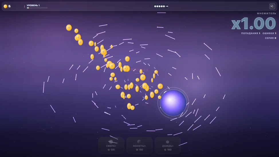 ВЗРЫВ НАГРАД — динамичная аркада, где каждое точное попадание по орбу ускоряет забег.