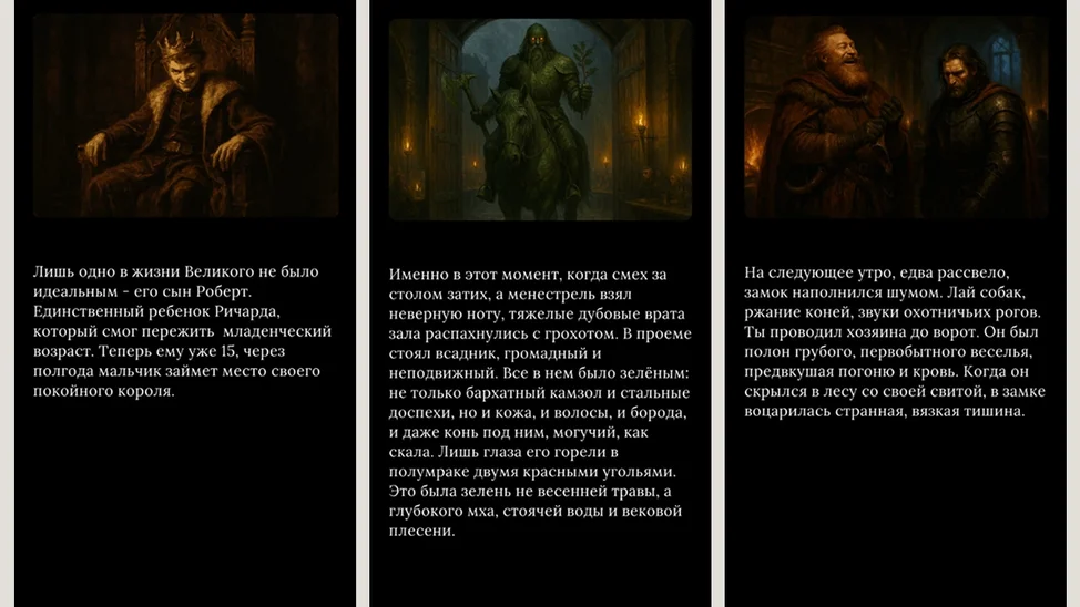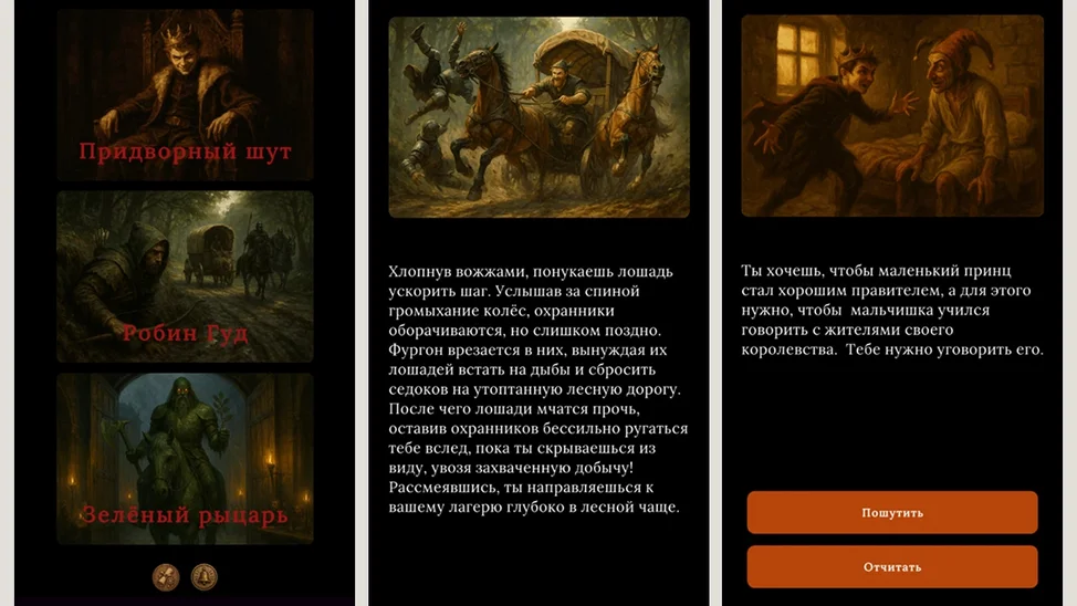 Погрузись в захватывающий мир средневековья, где каждый выбор имеет вес, а твои решения определяют судьбу целого королевства! "Эпоха Героев и Шутов" — это интерактивная книга-игра, объединяющая драматичные сюжеты, нелинейное повествование и множественные концовки.