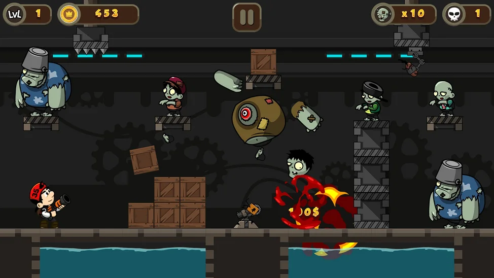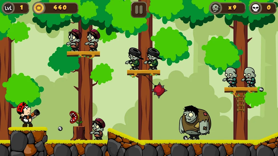 Захватывающий аркадный, где действие происходит в месте, полном зомби. Вы играете за человека, который должен уничтожить толпы оппонентов, движущихся к нему. Действия происходят с бокового видом и позволяют использовать внушительный арсенал оружия и средств защиты.